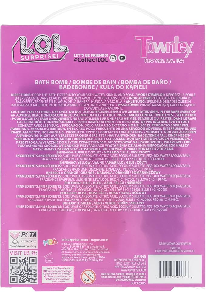 L.O.L. Surprise! 6 Piece Bath Bombs for Kids, Bubble Gum Scented, Bath Toys for Kids, Ages 3+, by Townley Girl
