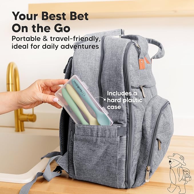 - Safer Silicone - KeaBabies 3-Pack Prep Silicone Baby Spoons Set is made from 100% food-grade, BPA-free silicone. With a topple-free handle and comfort sized scoop, these toddler spoons help BLW toddlers build confidence as they learn self-feeding.