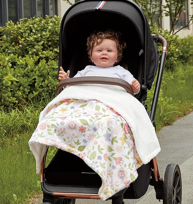 - 1. Luxury and comfort combined! This baby blanket is made of printed Minky + sherpa, providing a soft and snuggly experience for your little one, no matter what season it is.