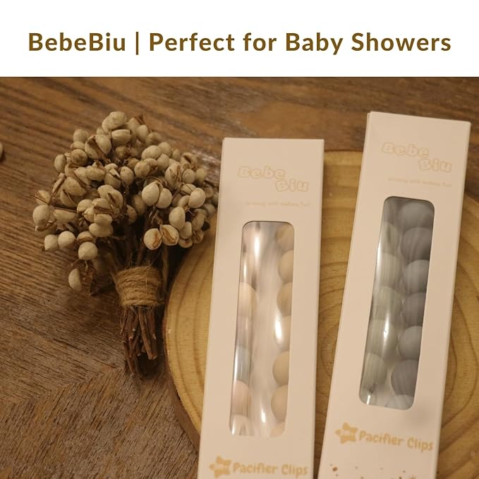 2 Pack Pacifier Clips, Silicone Pacifier Clip for Baby Boys and Girls, Baby Pacifier Strap with Silicone Beads, Soother Dummy Holder, Pacifier Holder, Keeps Pacifier Clean (Wilderness/Ether)