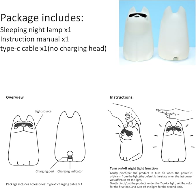 - PORTABLE & CORDLESS - The kids night light dog lamp is perfect used as night lights for kids room.The nursing night light comes with a simple charging cord.The squishy night light can be used with or without a charging cord, so it's very portable! The small desk lamp can be carried for going to the bathroom at night,feeding at night, and outdoor camping. Enjoy such a cute dog night light baby night lights.