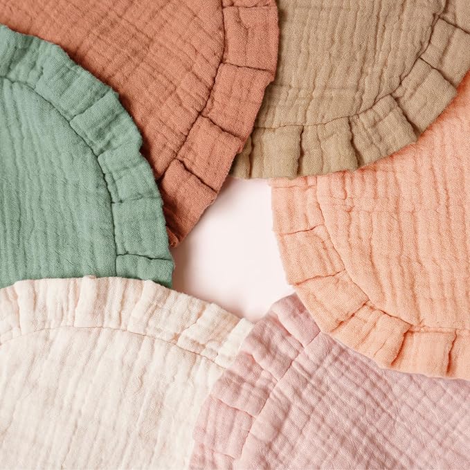 - Experience Unmatched Comfort: MairMore's muslin baby bibs redefine comfort with their premium 100% cotton muslin fabric, ensuring your little one stays cozy and dry during teething, drooling, or feeding sessions. Featuring a flounce-lace border design, the drool bibs add a touch of elegance to your baby's attire.