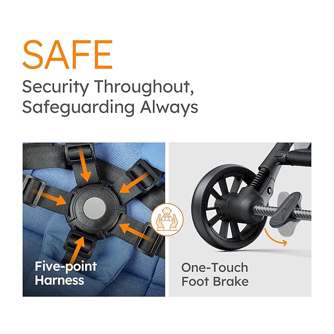 - One-Second Fold & Safety-First Design: Fold or unfold in just two steps. Features a one-click 5-point safety harness with quick shoulder height adjustment and a carry strap for easy transport. The MAMAZING foldable stroller exceeds CPSC and ASTM standards and uses OEKO-TEX certified fabrics, ensuring a safe and worry-free environment for your baby