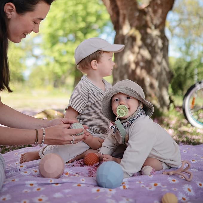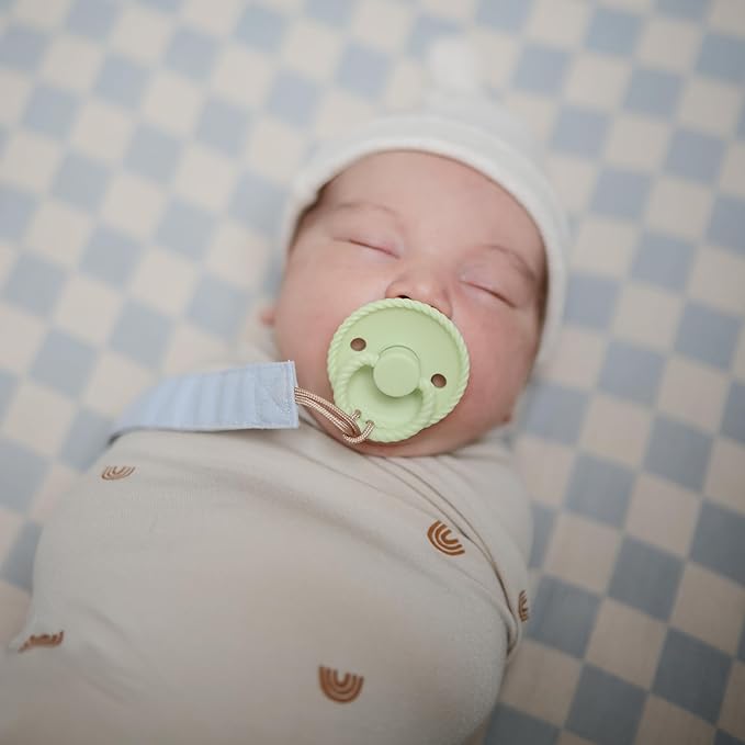 - The outward curve keeps the pacifier off delicate skin, while air holes and a security handle ensure your baby stays safe. Available in a range of soft colors, FRIGG pacifiers make a beautiful addition to your collection of baby essentials.