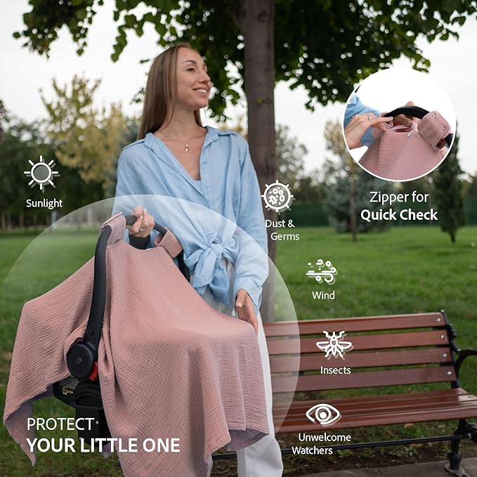 - ✔️[Convertible 5-in-1 Set] - This set includes a versatile nursing covers for breastfeeding, carrying bag & shirt clips that hold clothing for easy breastfeeding. The clips convert the breast feeding cover into a baby carseat cover, shielding your baby from sun and bugs. It features a hidden zippered opening for quick checks and doubles as a stroller canopy cover and blanket.