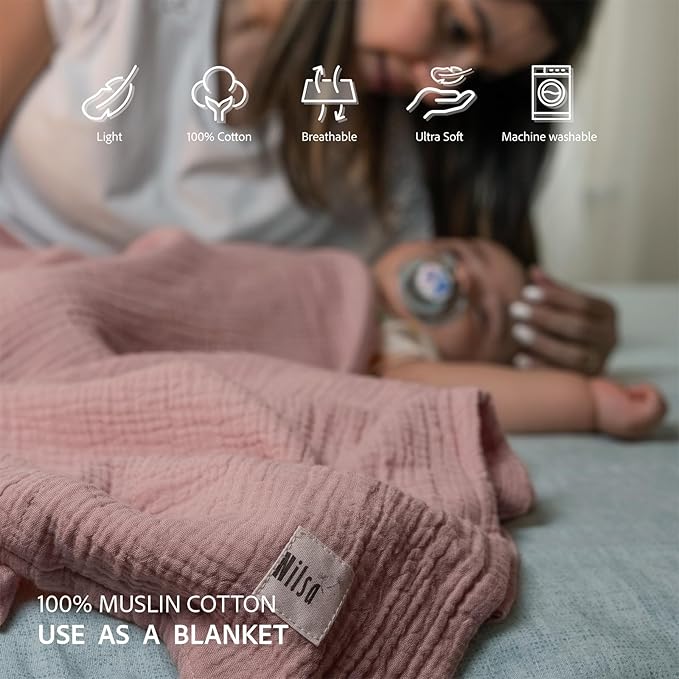 Nilsa 5-in-1 Muslin Nursing Cover up for Breastfeeding & Baby Car Seat Cover - Breathable Breastfeeding Cover With Rigid Hoop - 100% Cotton Privacy Apron Breast Feeding Covers For Women (Blush)