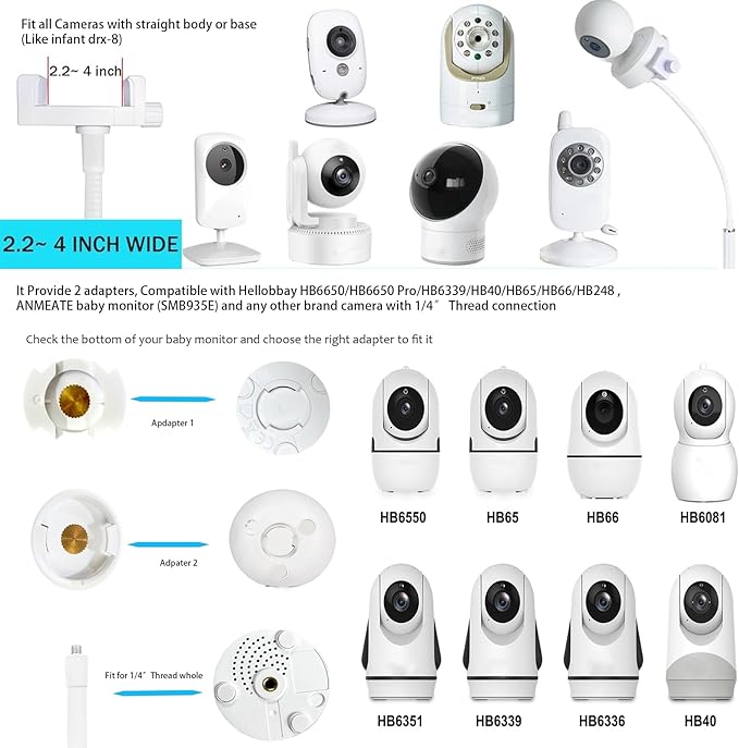 - 1.【Widely Compatibility】 Perfectly fit for your baby monitor. Compatible with the most baby monitors.Compatible with Infant Optics DXR-8 Pro,Hello Baby HB65T/HB30,Nanit Pro,Vtech,UKSUP,Motorola,eufy ,Owlet Cam 1 Baby Monitor etc. And any cameras with 1/4 screw mount.