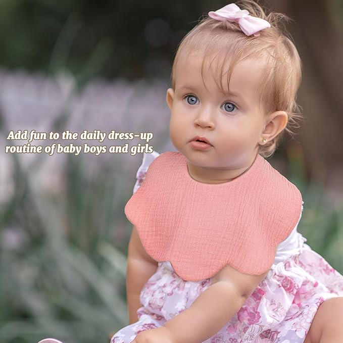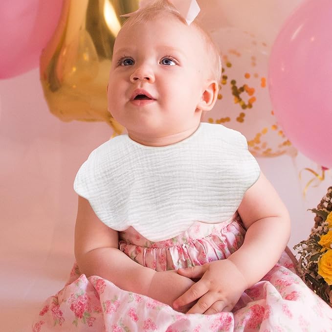 - Ultra-Soft & Absorbent: Made from 100% muslin cotton, these bibs are soft and gentle on your baby's delicate skin. The four-layer construction provides superior absorbency, soaking up drool, spit-up, and spills to keep your baby dry and comfortable throughout the day.