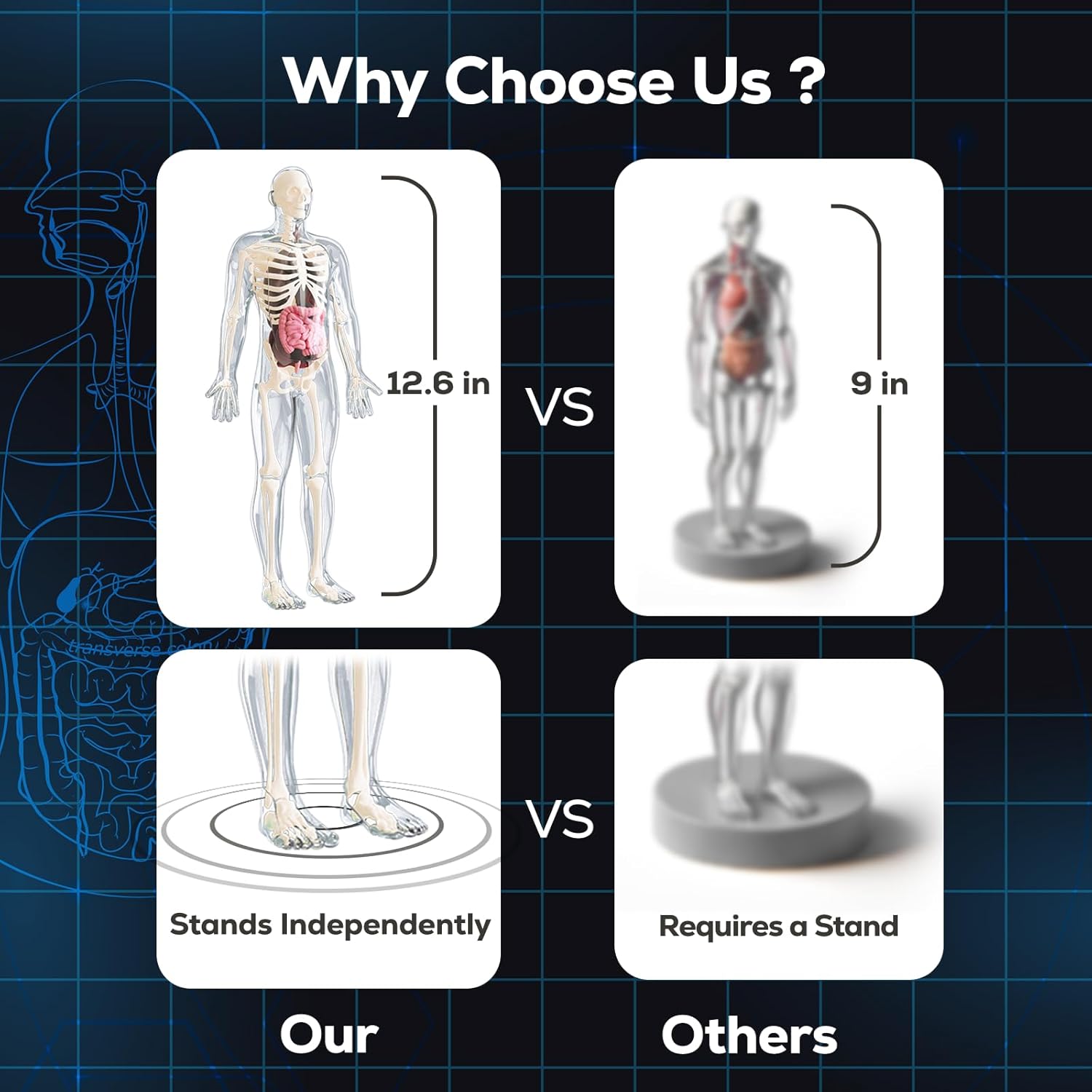 - Interactive Anatomy Model: The GobiDex Interactive Human Body Model is a 12.6-inch tall, self-standing, glow-in-the-dark science model that offers kids a hands-on way to explore human anatomy and understand real human structures