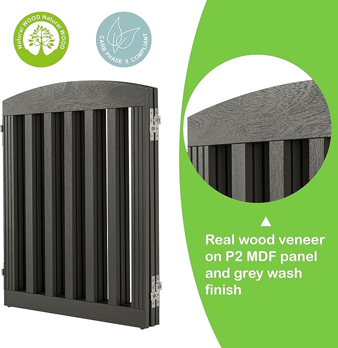 SPIRICH Wooden Freestanding Foldable Dog Gate, Extra Wide Step Over Puppy Gate, 3 Panels, Grey