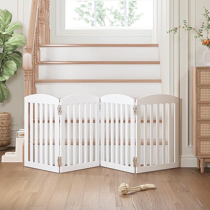 SPIRICH 96" Extra Wide 28" Tall Wooden Freestanding Foldable Dog Gate, Pet Gate Indoor, 4 Panels, White