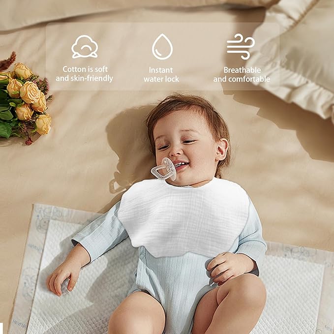 - Premium Craftsmanship: Our baby bibs are meticulously handmade with care and precision, using 4 layers of 100% muslin cotton. This premium quality material ensures superior softness, breathability, and durability, making them perfect for your little one's delicate skin.