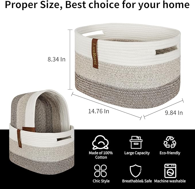 - High Quality Cotton Rope Woven: Woven cotton thread is very soft and don't damage your floors and furniture. Seamless design, not easy to tear,More firm than rattan and plastic materials. Our storage basket has no harsh chemiacls added, and the cotton rope basket is safe for kids, elders and pets. Firm enough and stylish enough to go anywhere in the home