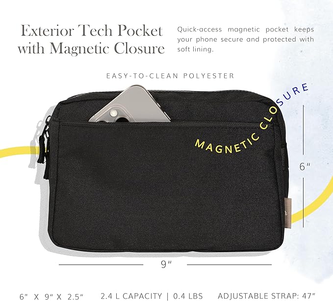 Red Rovr Everyday Joey Belt Bag | Organization & Zipper pockets |Adjustable Strap for All Ages (Black)