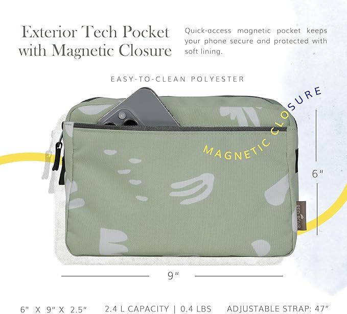 - Adjustable strap to wear on hip or crossbody