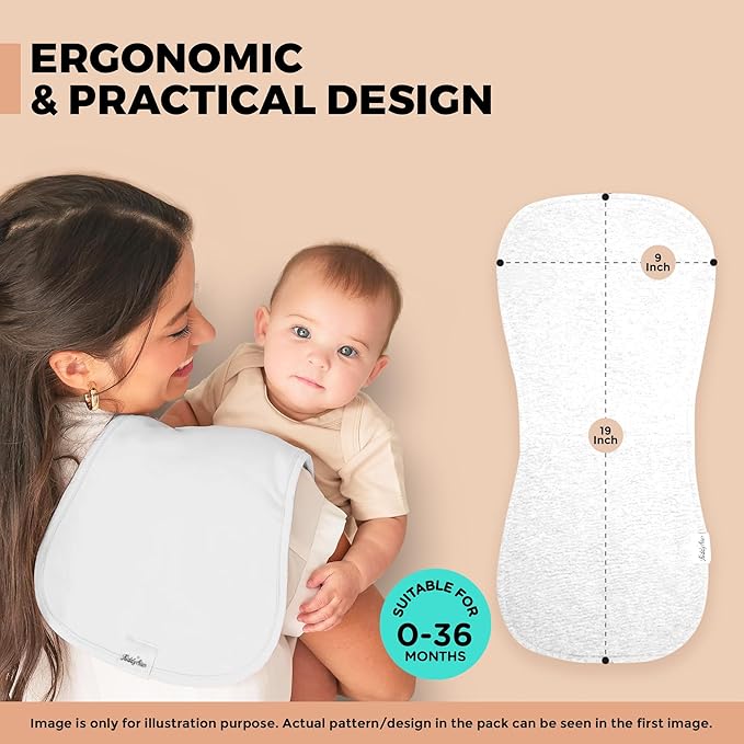 - 📏 EXTRA-LARGE COVERAGE, LESS MESS: Measuring 21 x 10 inches, each cloth provides generous shoulder and chest coverage to catch every drop of drool or spit-up. Whether you're feeding or burping, you’ll stay clean and dry—no need for outfit changes mid-day.