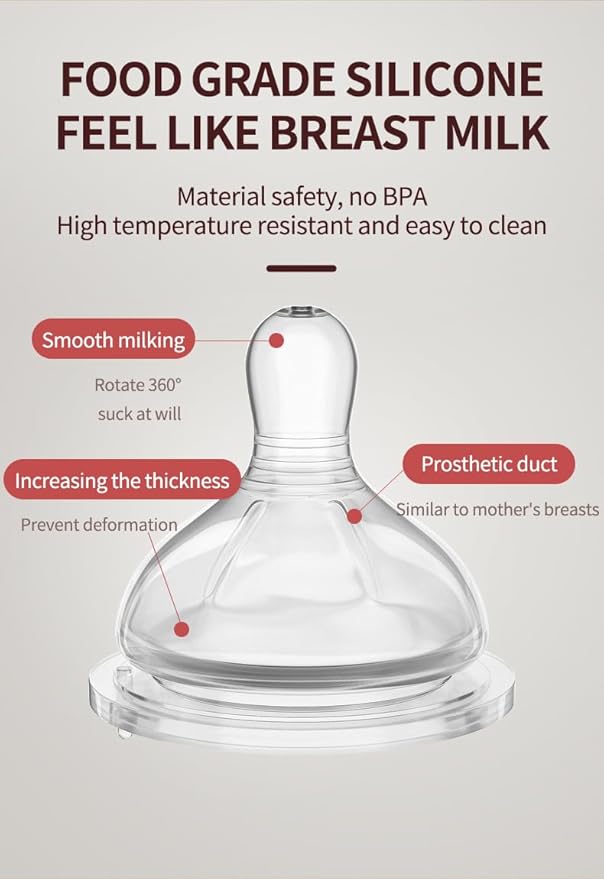 - Breast-Like Nipple — Made from food-grade silicone, it is BPA-free, flexible, soft, and free-flowing. It works like a mom's breast and encourages newborns to latch naturally.