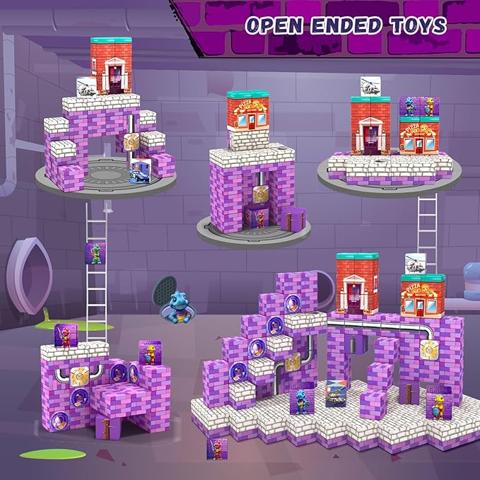 - ● Magnetic Blocks - Dinosaur Adventure Games: Dive into a magnetic action-packed world with our unique magnetic blocks set! The magnetic blocks features four brave dinosaur heroes and vivid city buildings. Kids will get magnetic toys to build their vibrant magnetic blocks cityscape like lively restaurant house and cozy rest area. Unleash your kids' creativity and enjoy hours of role-play fun with these magnetic cubes!