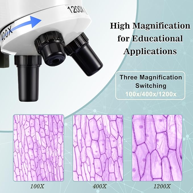 - THE POWER TO SEE THE UNSEEN: This kids' microscope features a monocular viewing head with an LED light. Offering 100X, 400X, and 1200X magnification levels, it opens a window into the microscopic world, revealing hidden details that captivate both children and adults.