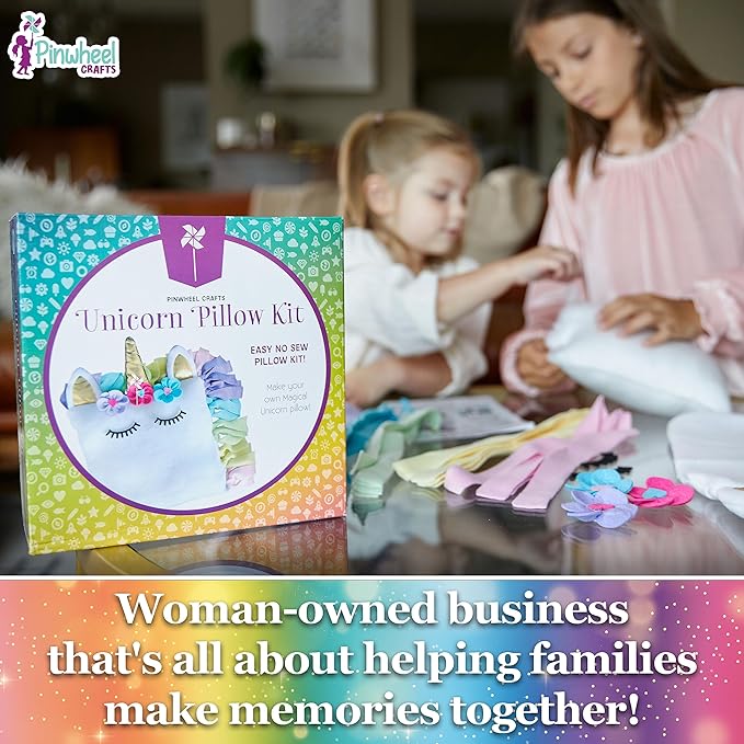 - MAGICAL UNICORN ARTS & CRAFTS: An easy-to-make DIY birthday gift for girls. Here's a lovely and cuddly unicorn pillows for girls. No sewing kit for kids that makes perfect birthday gifts for 6+ year old girls! Easy as abracadabra with these unicorn pillows - simply knot, peel, and stick
