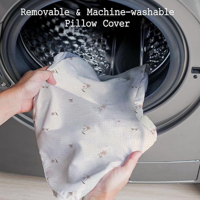- 【EASY CARE】 The feeding pillow removable cover is machine washable. Due to the muslin cotton fabric, it will be softer and softer with more washes. NOTE: We use vacuum gift style package, please shake & rub the pillow by hand to let the air into it OR put the pillow in the dryer for 5-10 minutes to recover it.