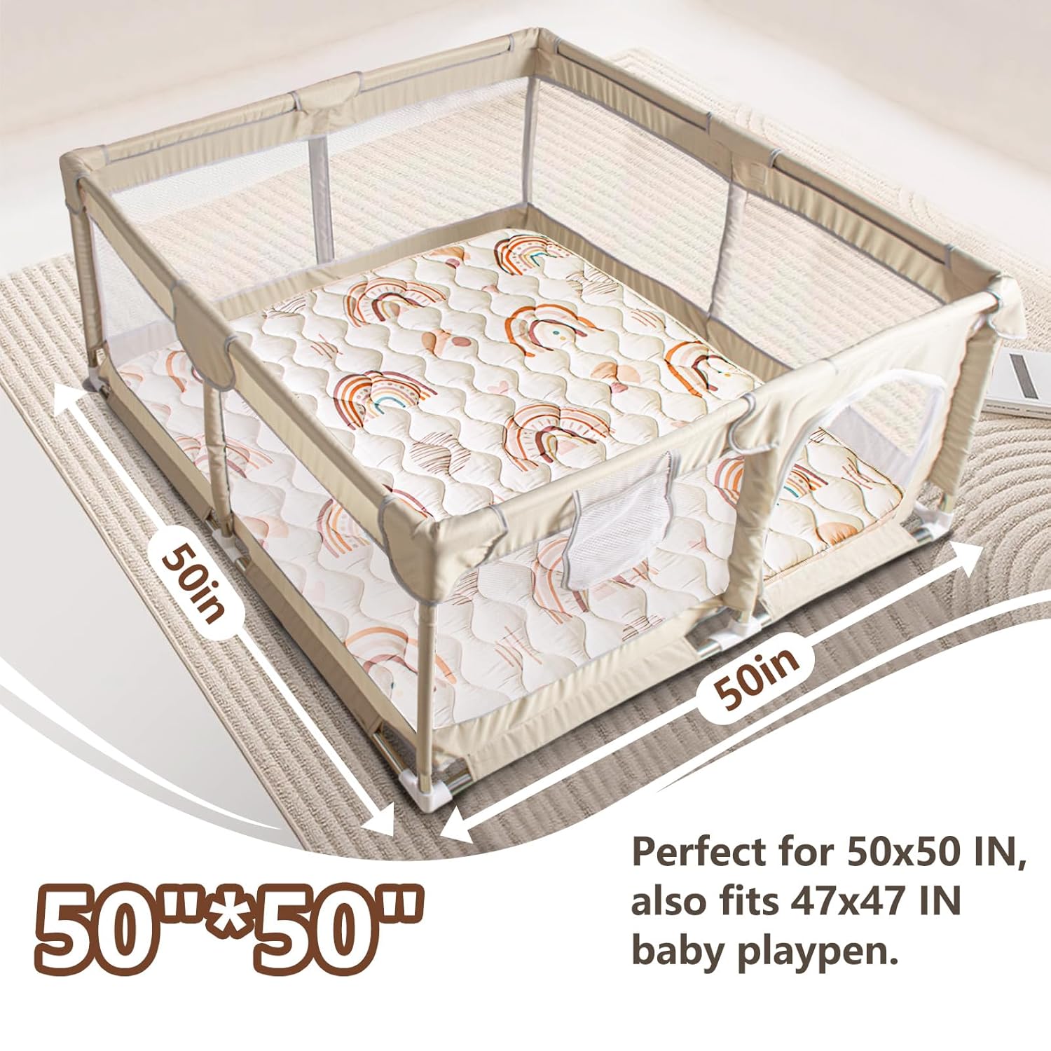 - All-in-One Play Space: This soft play mat converts any standard 50x50 inch playpen into a comfortable and secure play area for baby with its one-piece roll-up design