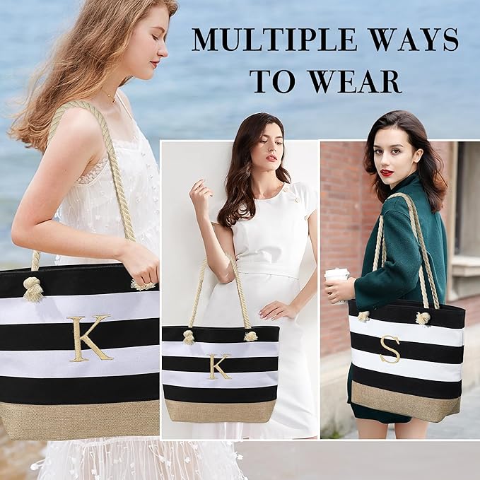 • 【Personalized Gifts and Unique Initial】The classic embroidered initial and high density monogram, makes the canvas beach tote bag is suitable for wedding, Valentine's Day, Anniversary, Birthday, Mother's Day, Teacher's Day ,which is the personalized gift for women. Whether for wife, girlfriend, mother or sisters, bridesmaid, this beach bag shows thoughtfulness and respect for their individuality, making them feel unique love and special treatment