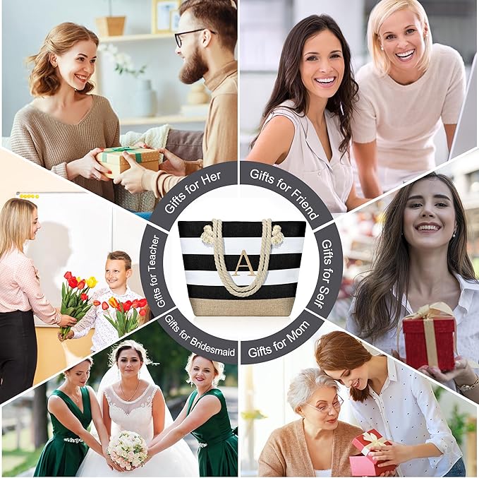 - 【Personalized Gifts and Unique Initial】The classic embroidered initial and high density monogram, makes the canvas beach tote bag is suitable for wedding, Valentine's Day, Anniversary, Birthday, Mother's Day, Teacher's Day ,which is the personalized gift for women. Whether for wife, girlfriend, mother or sisters, bridesmaid, this beach bag shows thoughtfulness and respect for their individuality, making them feel unique love and special treatment