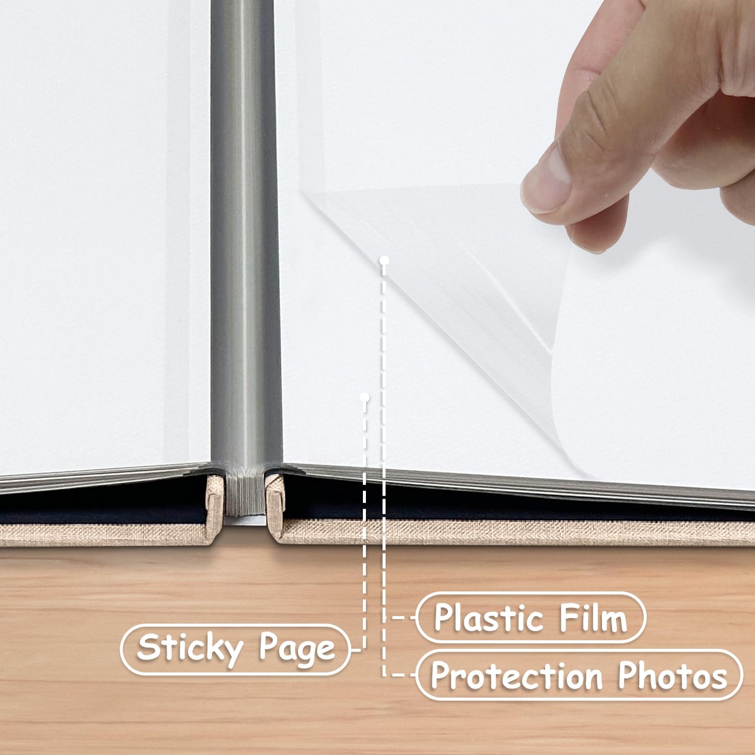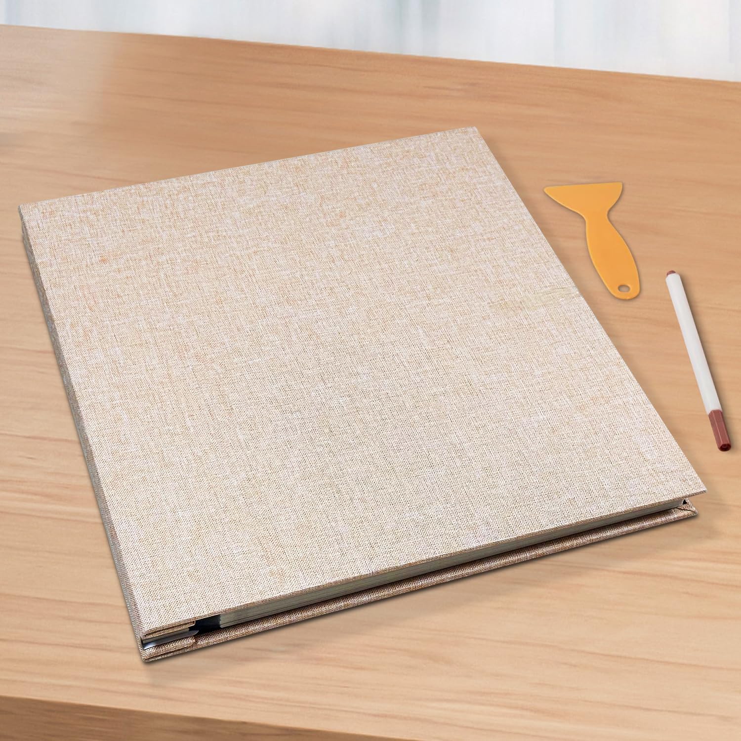 Large Photo Album Self Adhesive Scrapbook Album for 4×6 5×7 8×10 Pictures DIY Magnetic Linen Cover Album 40 Pages for Family Wedding Gifts with Metal Pen and Plastic Board, Light Beige