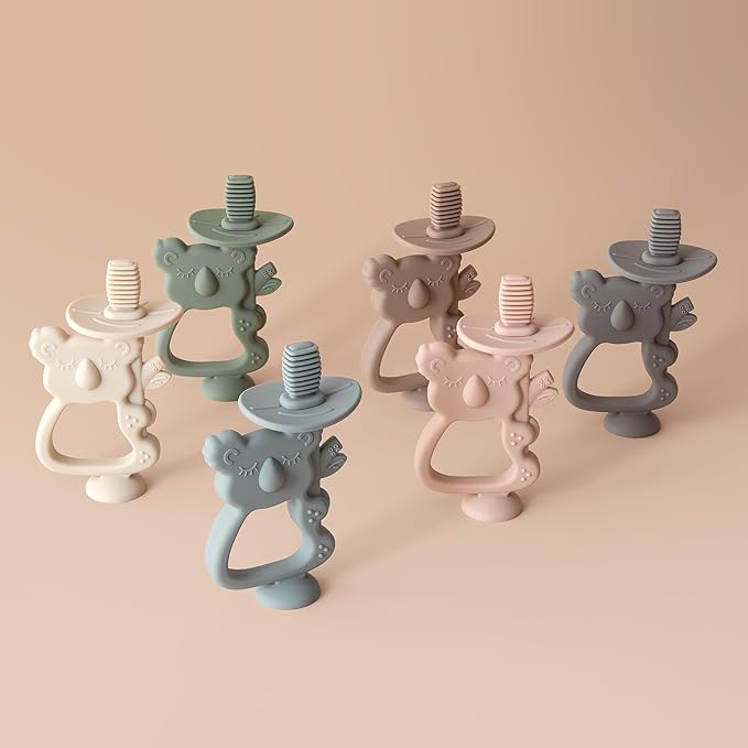 Moonkie Teething Toy, Safe & Easy to Hold BPA Free Silicone Teethers, 360° Baby Toothbrush with Suction Base, Teether Toys Best for Babies 6-12 Months (Koala Blush)