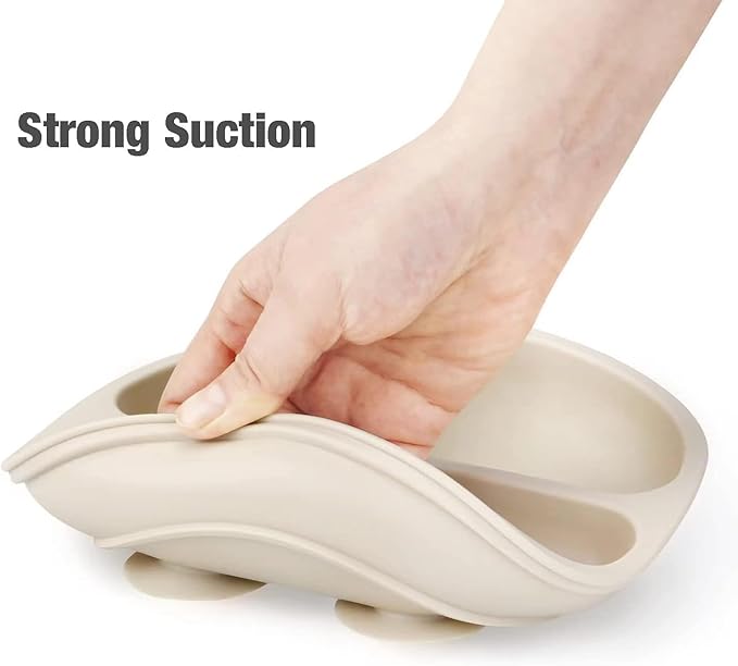 - BABY SUCTION PLATES: Give your little one more independence at mealtimes with their very own silicone plate featuring 3 divided sections. The non-slippery with sunction design will prevent plates from skidding. Use a bit of water under suction before using for best results.