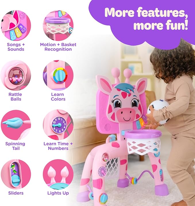 - GIRAFFE-TASTIC FUN - Your little one will have a toweringly good time as they learn to slam dunks and smash free kicks with our uproariously interactive giraffe activity center.