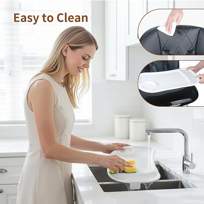 - Easy to Clean: The removable tray and seat cushion make maintenance of the wipeable high chair effortless. Dishwasher safe PP trays and wipeable PU leather cushions ensure that the easy clean high chair is cleaning. This would be the best option for busy families.