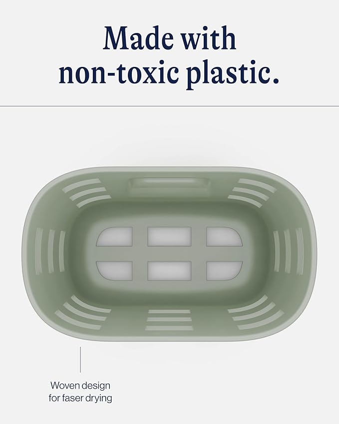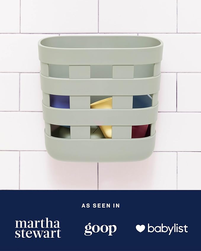 Lalo Bath Time Storage Bin - Keep Items Organized & Dry with Non-Toxic Plastic, Easy Cleanup, Removable Drying Bin, Woven Baby Organizer, Secure Wall Attachment, 9 x 5.5 x 8.5 in - Sage
