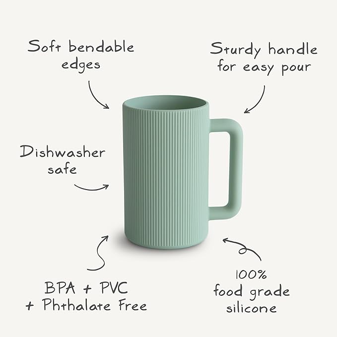 - Sofe & Soft Silicone: Made from food grade silicone and featuring calming colors, the Mushie bath rinse cup features a textured exterior and a convenient handle, so it's easy to keep a secure grip while pouring. All mushie Bath Rinse Cups are also Prop 65 and CPSIA Complaint.