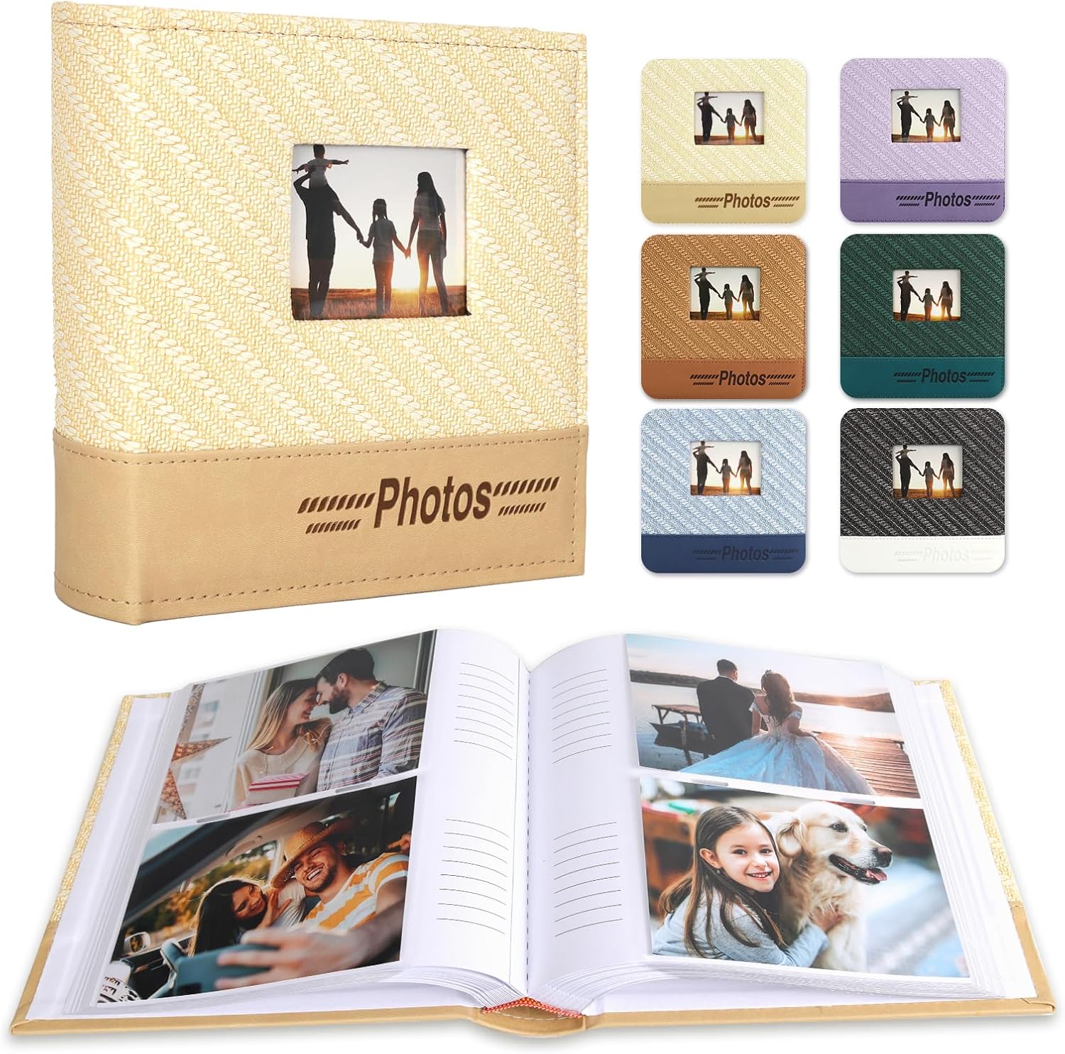 RECUTMS Photo Album with 200 Photos, Leather Cover with Front Window, 4x6 Picture Albums Book for Wedding, Family, Baby, Kids, Birthday, Couple (Beige)
