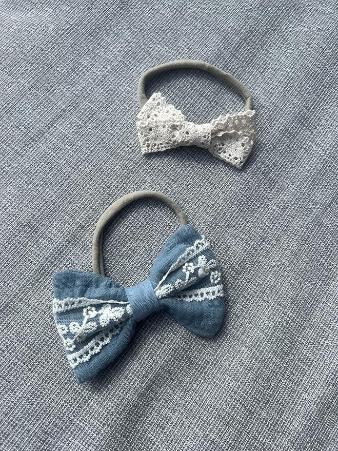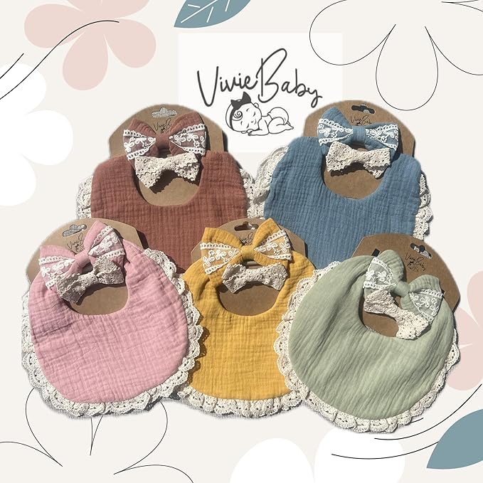- Unique Design: Our bib includes a total of 3 layers to make it incredibly absorbent. The top and bottom layers are soft muslin with a waterproof layer inside. Each bib features an adorable lace accent inspired by boutique baby style, this set includes 1 bib and 2 matching bows; 1 with the matching muslin fabric and lace accent, and the other with a beautiful vintage looking lace. Bows can be worn to create a sweet trendy look with any outfit. These sets are both pretty and practical.