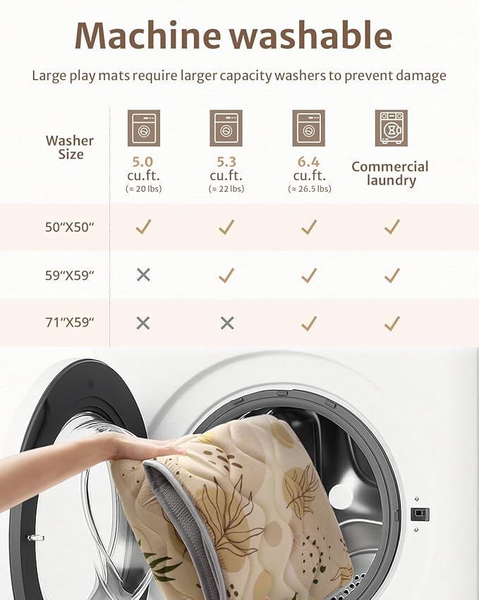- Thicker & Larger - Our play mat is thicher than other brand, having enough cushion for the baby to roll around without hitting head. This 71 x 59 inch mat fits playpens with the same INSIDE dimensions, providing larger space for babies to play.NOTE:Measure your playpen’s inner diameter/available space before buying to ensure a proper fit