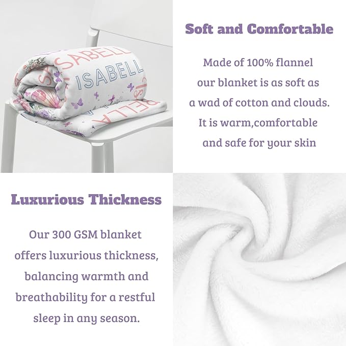 - PERSONALIZED BABY GIFTS: Personalized blanket makes for a perfect present for birthdays, Mother's Day, Valentine' s Day, or even as a special treat for yourself! It also serves as a one-of-a-kind gift for couples, best friends, and family members. With its charming appeal, it's an adorable option for birthdays, newborns, grandchildren, and anniversaries.