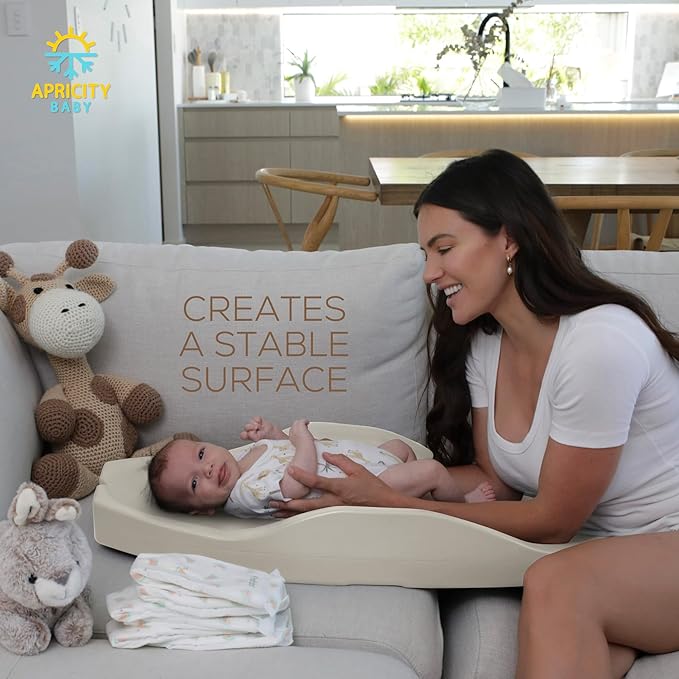 Apricity Baby Diaper Changing Pad – Waterproof Wipe-Clean Foam Changing Mat with Raised Sides, Non-Slip Base & Portable Design, Extra-Large 31.5” × 19.7” for Newborn to Toddler (Beige)