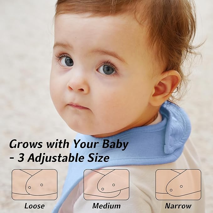 • 3 Adjustable Size: Equiped with 2 easily-fasten snaps, our muslin baby bibs can be easily adjusted to fit your baby’s neck comfortably, making it perfect for newborns and infants babies under 36 months of age.