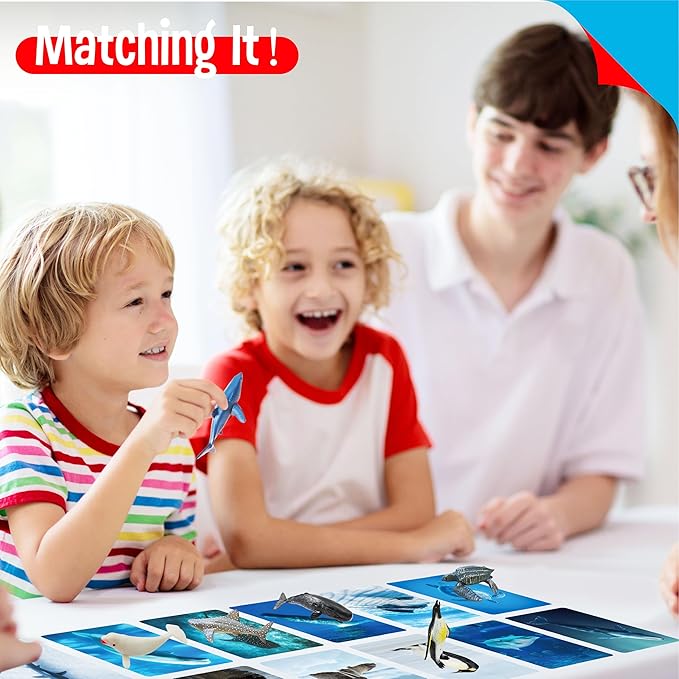 - Super Value Pack: With this educational learning toy set, you will get 12 different marine animal figurines and 12 matching introduction flashcards with detailed basic information on these animals. Children can expand knowledge about marine animals while playing these marine toys at the same time.