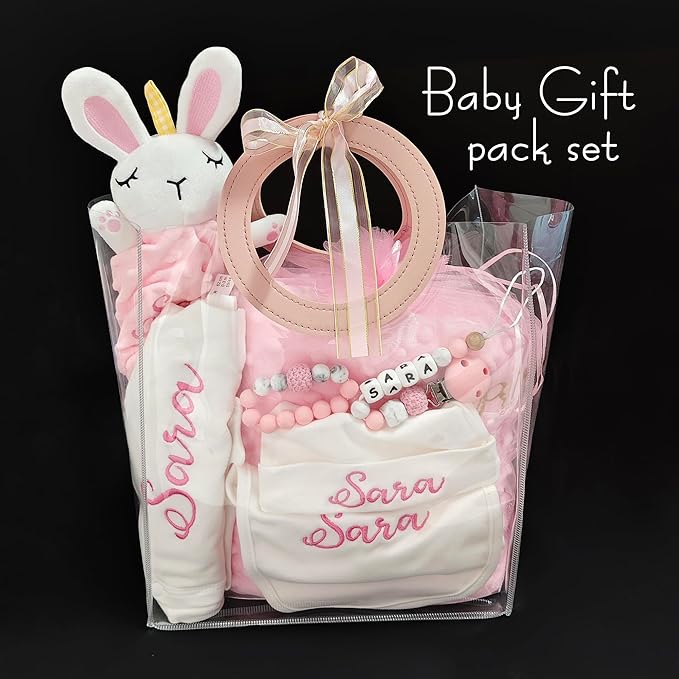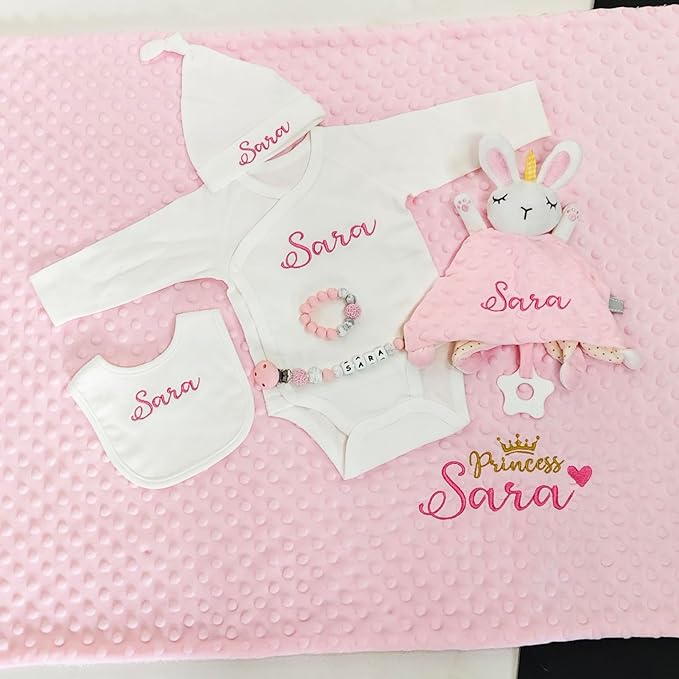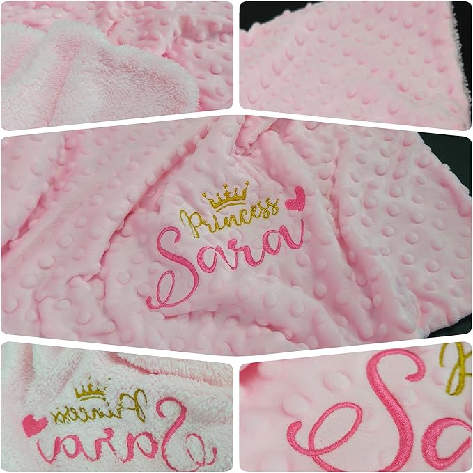 Personalized Baby Blankets for Girl, Custom Baby Blanket with Name, Embroidered Soft Minky Fleece Plush Sherpa Toddler Crib Stroller Blanket, Customized Newborn Birthday Gift Set, 27 * 35 Inch-Pink