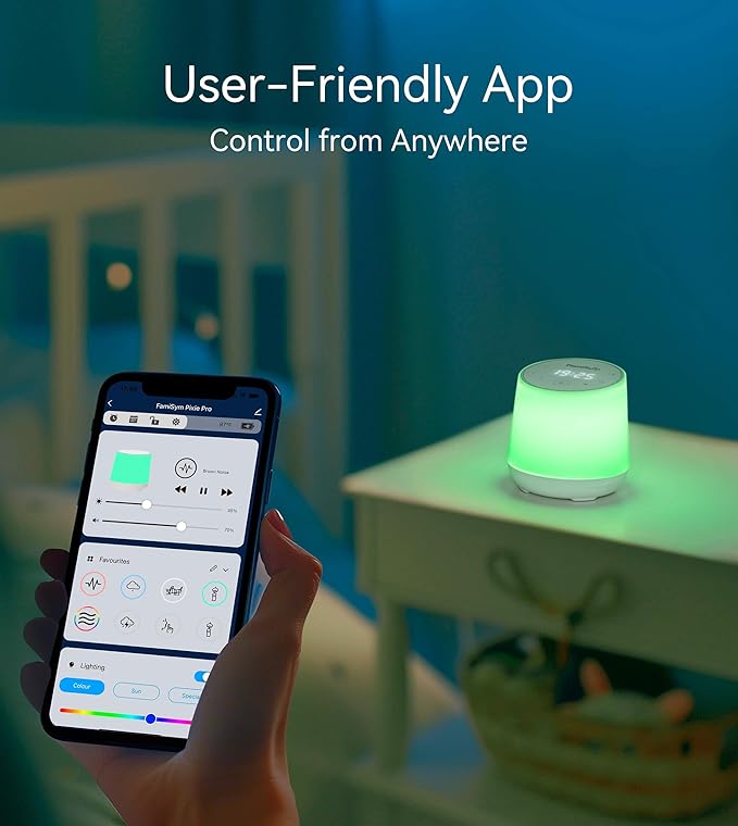 - Control via App from Anywhere. Program color and sound, adjust settings and set timers remotely with smartphone. Customize your Favorite on APP sound, and easily access by touching the 'FmiSym' button on the device.