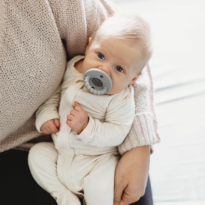 Ryan & Rose Cutie PAT All-in-One Pacifier and Teether Massaging Teething Ring and Hideaway Binky for Growing Babies (Prep (3 Pack), Flat)