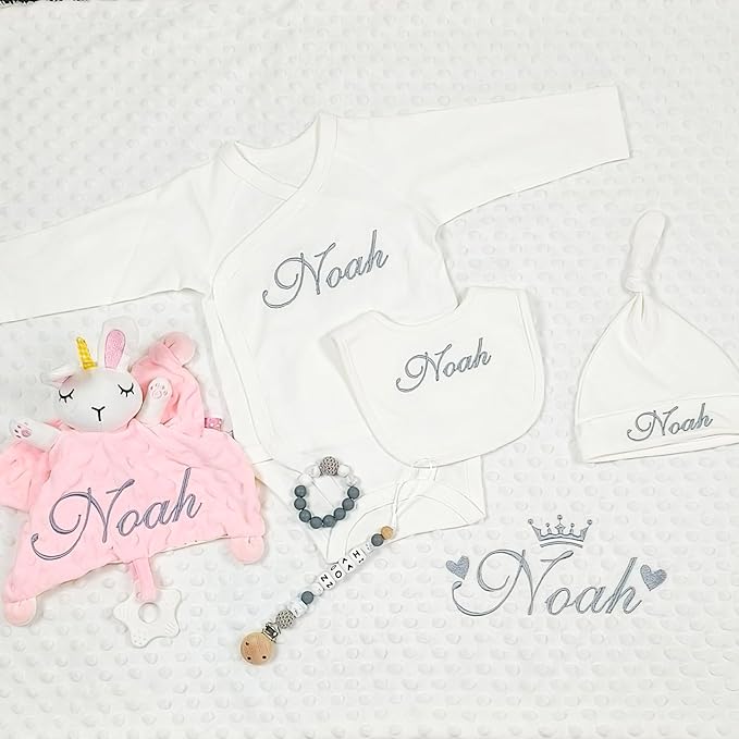 - Soft, Comfortable and Lightweight, Luxurious High Quality Neat Embroiddery, Packed in Organza Gift Bag, Perfect Newborn / Infant Gift for Friend and Family.