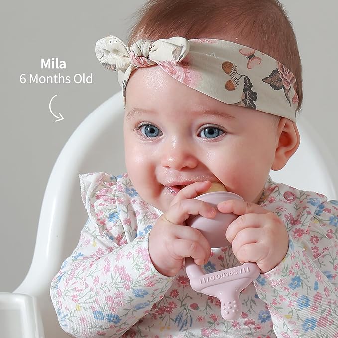 - Brighten up Teething Time - Our food feeder is super easy for babies to hold/chew and for parents to open/close like a breeze. The soft pouch only allows small pieces to pass through, and the teething part beautifully resembles a pacifier for soothing sore gums.