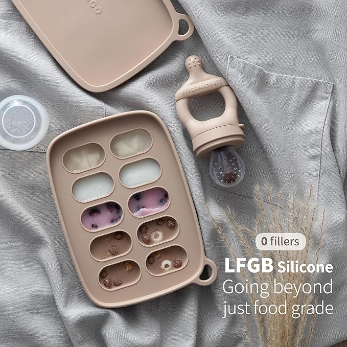 SAMiGO Baby Food Fruit Feeder and Breastmilk Popsicle Mold Set, Silicone Fruit Teether, Food Feeder Pacifier for Teething Relief, Freezer Tray, Baby Feeding Essentials, 4 Months+