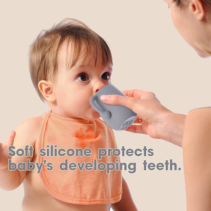 - A PRACTICAL CUP: It is gentle and flexible, specifically designed to fit baby’s mouth and hands. Soft silicone protects baby's developing teeth, it is a great for toddlers trying to master fine motor skills and drinking independently; Silicone is heat-resistant, you can use it with cold, warm and hot foods and liquids, it's safe to pop in the microwave, dishwasher, freezer and even oven