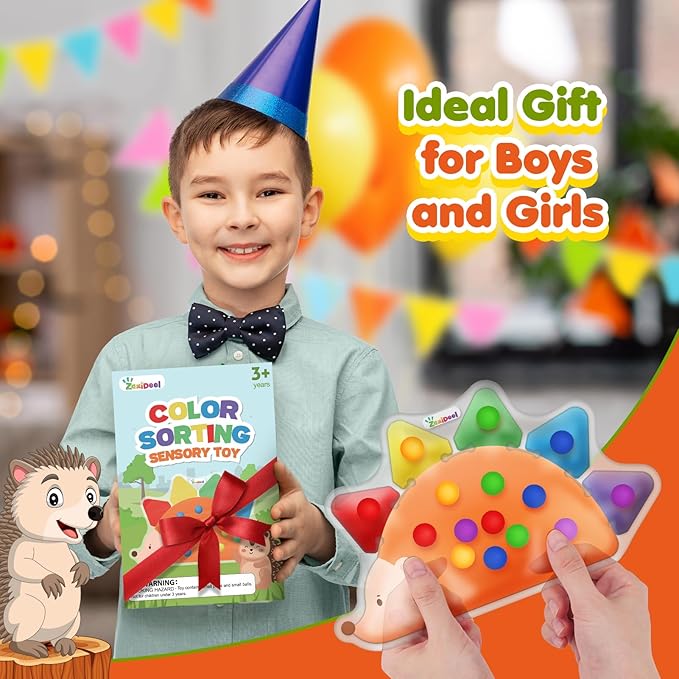 - 【Color Sorting Toys For Preschooler】Hedgehog-shape color sorting toys include 15 rubber beads of different colors,which squeezing and pressing the rubber beads of different colors to sort the colors and put them into the correct colors to complete the color matching game.Montessori Color sorting toys are suitable for children aged 3, 4, 5 and 6 years old and build color recognition skills. Through playing this lovely matching game, little kids can also enhance the fine motor skill and hand-eye coordination.